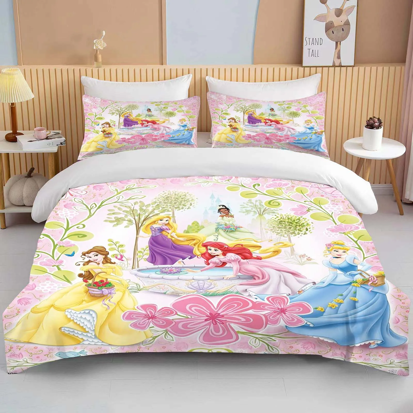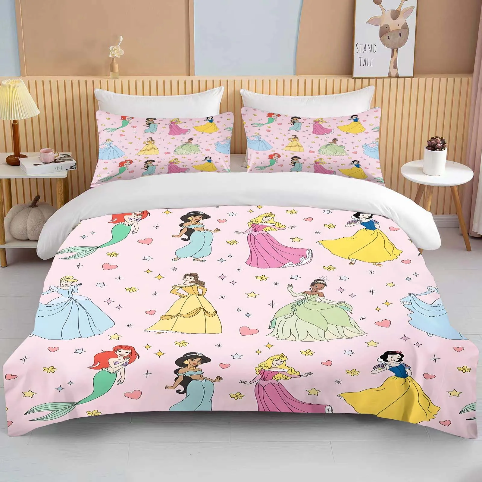 Transform your child’s bedroom into a magical fairytale with this charming Disney Princess Bedding Set, featuring beloved princess characters and vibrant designs.